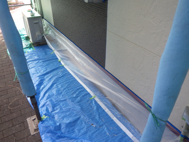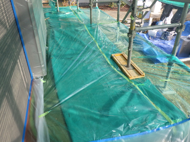 2階ベランダ周りの養生が終了しました。