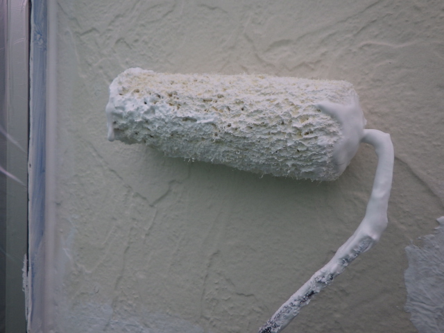 刷毛塗装に重ねるように、ローラーで下塗り塗装中です。