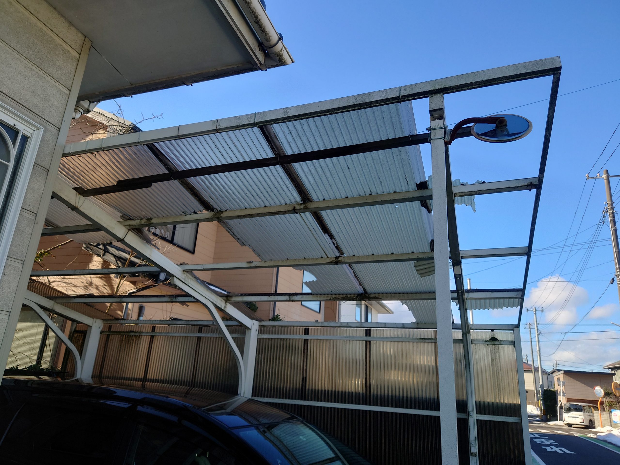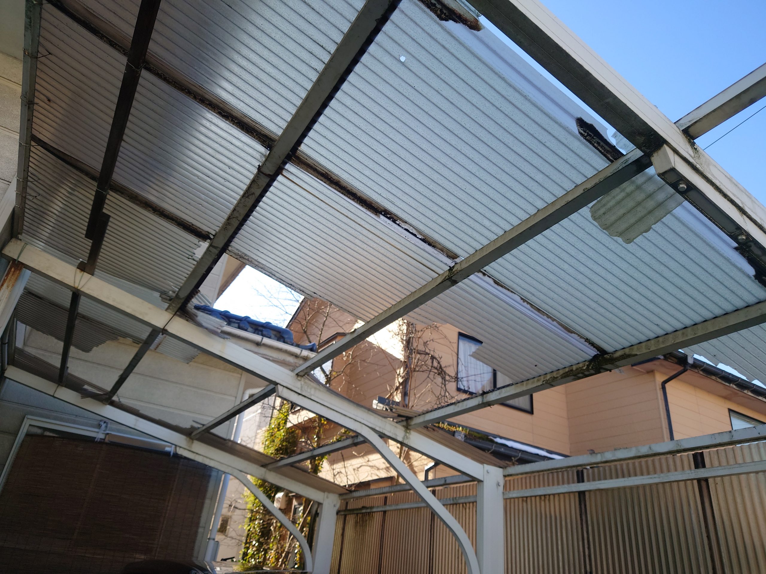 ホーム > 新潟市南区にてカーポートポリカ屋根が剥がれているので見て欲し…