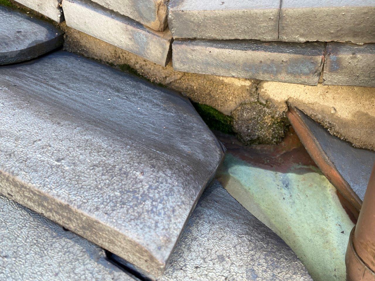 上記写真では分かりにくいですが、穴があいていました。谷は銅板でしたので、劣化すると穴があいてしまいます。