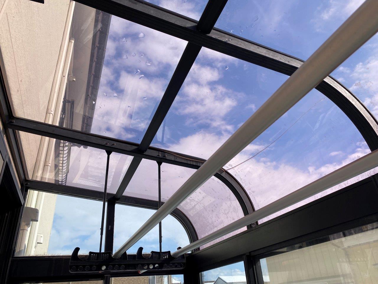 母屋の軒先がサンルーム屋根に掛かっているため、落雪の衝撃によって破損を引き起こしてしまいます。