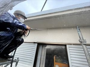 まずは高圧洗浄をして外壁の汚れを落としていきます!