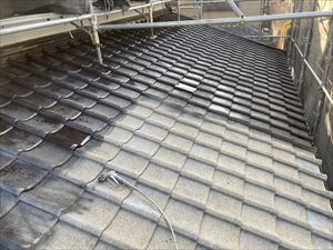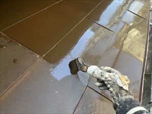 今回の屋根は傷みが激しく下地の塗料の吸い込みが激しいので