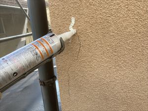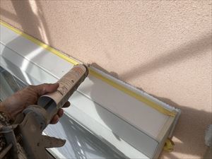 窓やドアのサッシ周りなどもコーキングを打っていきます。
