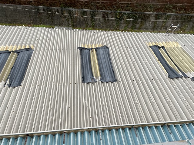 写真の黒くなった部分って分かりますよね!これは明り取りで透明なスレートを張っています!弊社も工場は張っていますがとにかく暑い!暑すぎます!夏は熱中症になります( ノД`)シクシク…