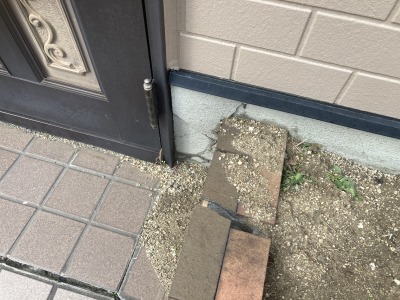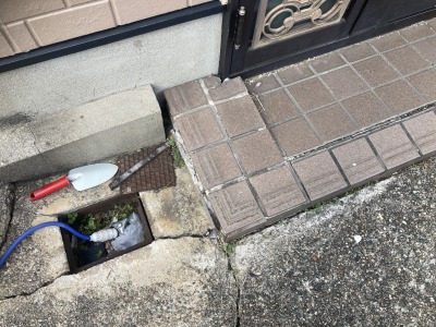 地面が沈んでいるところには、砂やセメントを入れて高さを調整します。