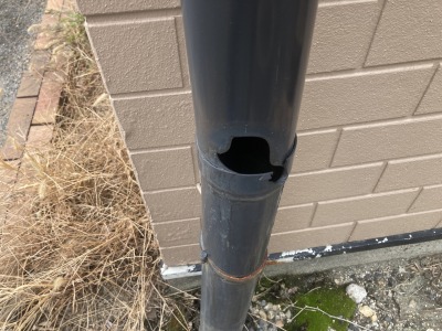 今回の場合は樋の清掃でいけます、放っておくと、雨水があふれて車や地面が濡れやすくなる原因になります。