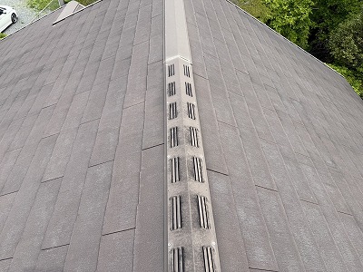 三郷町にて2階建てスレート屋根のひび割れ、棟板金カビ無料点検