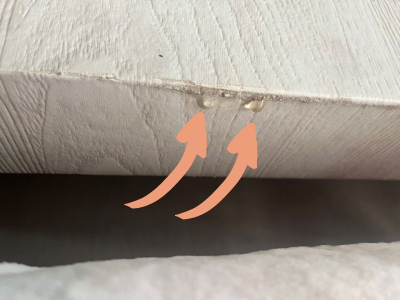 寝室の状態を見ていきましょう!!!天井部分がかなりやばく!!雨漏りで天井のクロス部分が剥がれています!クロスが剥がれ中の木部が露出しています!!