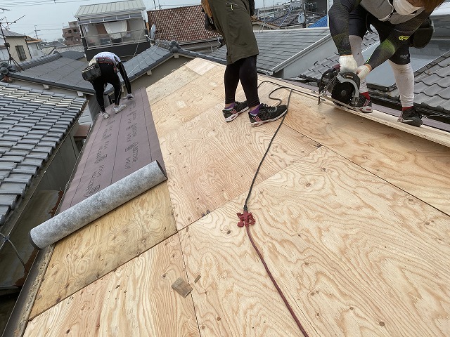 そのために屋根下地を構造用合板12mmを施工していきます。
