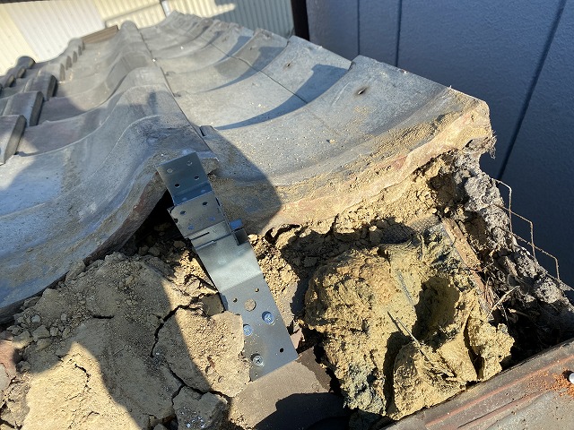 瓦の高さに合わせて1センチずつ調整が可能できて、金具は家のてっぺんの棟木に固定しているために大きな地震が起こっても棟瓦が崩れることはないと思われます。