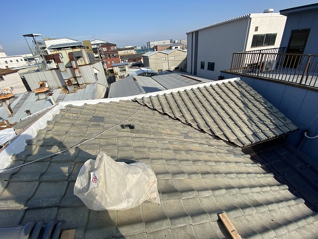 ホーム > 大東市で谷板金入れ替え工事と棟瓦7寸丸工事をしました。(2日…
