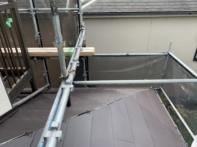 工事するにあたり家の外周を足場を架けて安全を確保し手から工事を行いました。