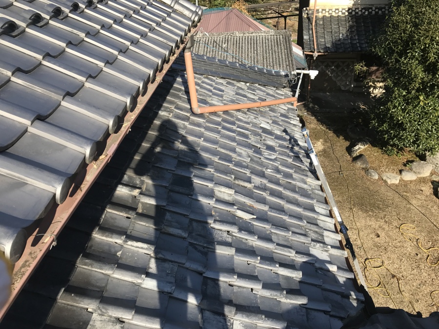 長年使用されてきた瓦は劣化が進んでおり、全体的に下にずれている箇所が多数見られました。