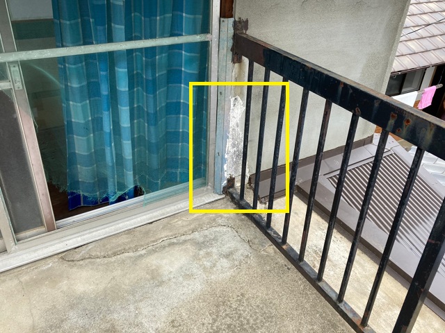 次はベランダと壁の立ち上がりとサッシ周辺を確認します。