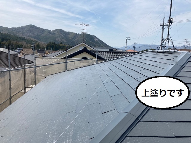 仕上げの上塗りを終えた屋根は、美観だけでなく耐候性も大幅にアップしています。