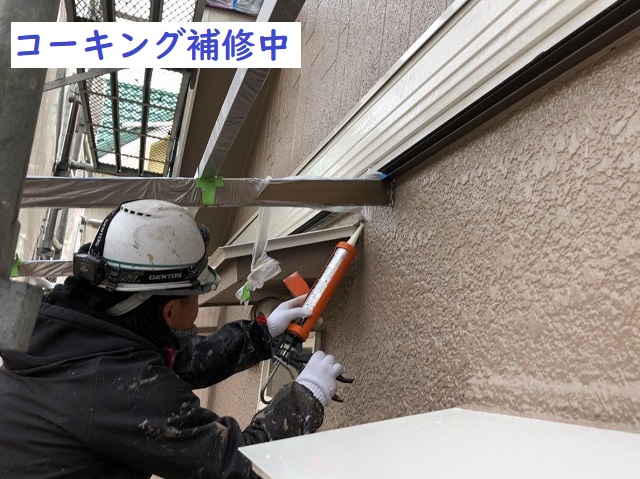 帯や庇(ひさし)、窓サッシと外壁の間には隙間があり、そこにコーキングを施すことで雨水の侵入を防ぎます。