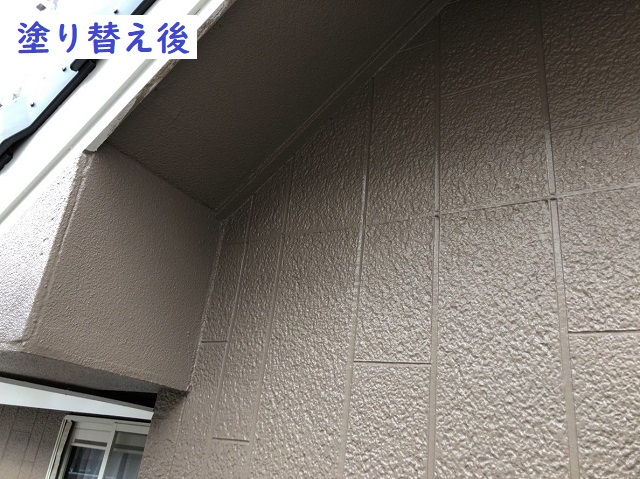 下塗り、中塗り、上塗りの工程を経て、外壁は落ち着いた色に塗り替えられました。