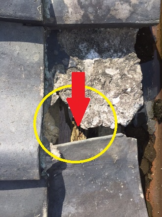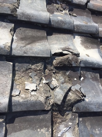 伊賀市の木造住宅で割れた屋根瓦と傷んだ下地を点検し補修方法を検討しました