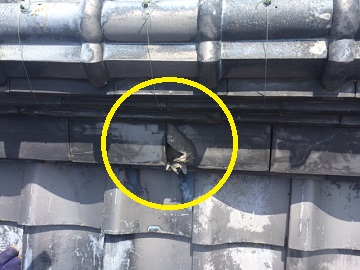 次に点検したのは丸流し(屋根の谷部分に使われる瓦)です。