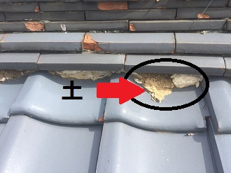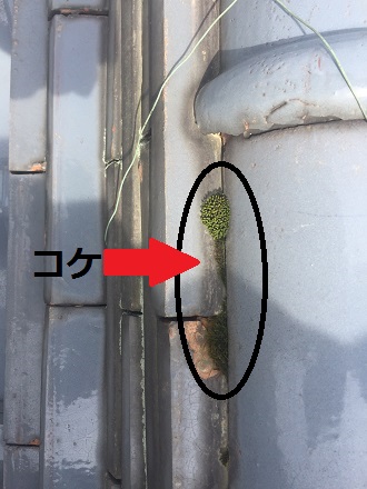 伊賀市の2階建て陶器瓦屋根の本棟の点検/コケ・漆喰・割れをチェック