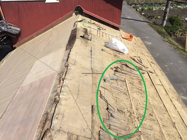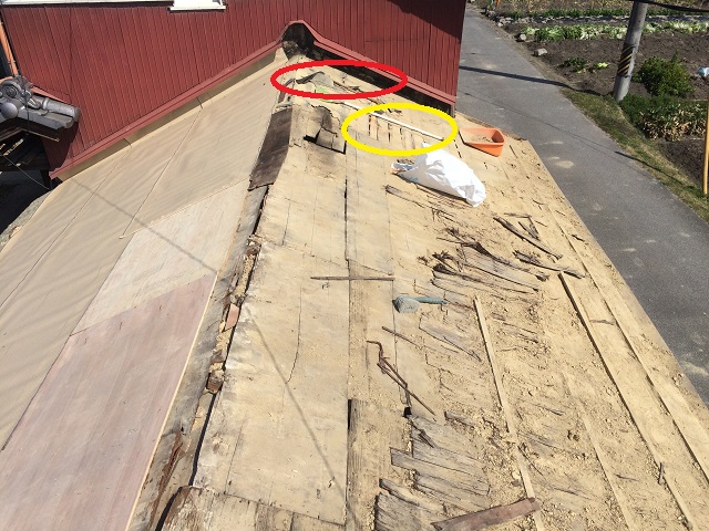 また、赤色で囲んだ防水シート(ルーフィング)も確認できました。