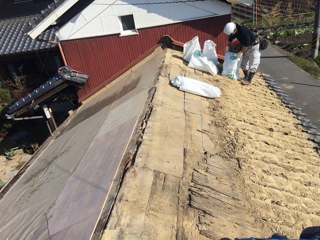 今回は伊賀市にある土葺き屋根の風呂屋根に発生した雨漏りを改善するため、日本瓦の葺き替え工事と瓦おろしの様子をご紹介します。