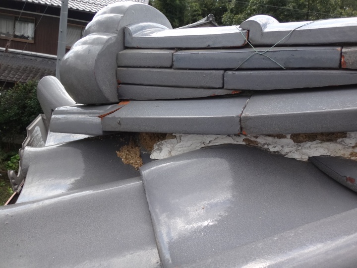 ホーム > 伊賀市で2階瓦屋根の棟漆喰の劣化を確認しました