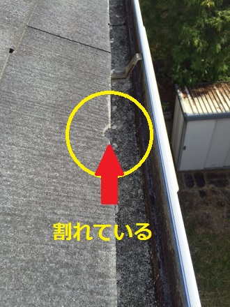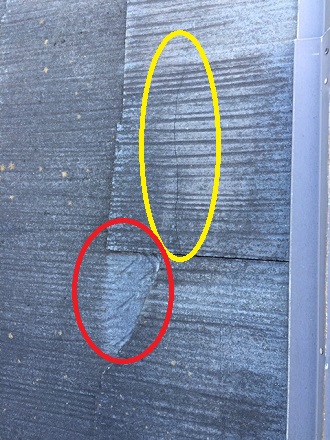 名張市の戸建てカラーベスト屋根を点検/劣化でひび割れしていました