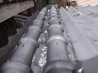 名張市で瓦屋根住宅の丸流し部分の点検を行いました。