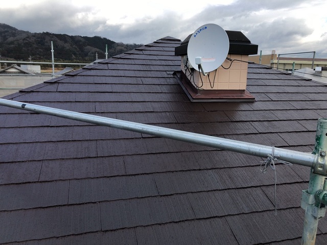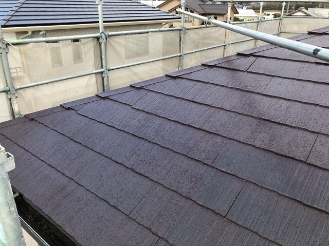 ひび割れなどの大きな損傷はありませんでしたが、屋根材自体が塗料を吸い込みやすい状態になっていたため、下地処理が非常に重要な現場でした。