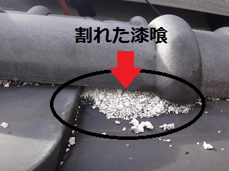 名張市で大屋根の丸流し漆喰が劣化、雨漏り予防のため点検を実施しました