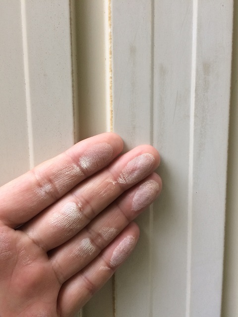 外壁を手で触ると、白い粉が指に付着しました。
