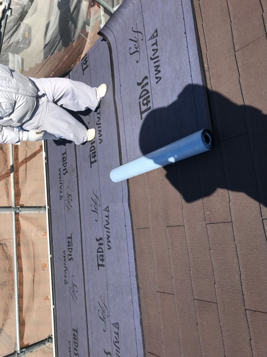 こちらはルーフィング(防水シート)を張っていく作業中です。