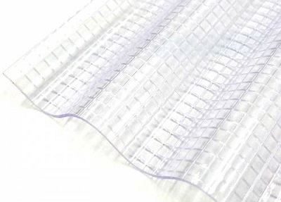 塩ビの波板とは違い、ガラスのような透明の波板で、強化ガラス繊維のネットが入っています。