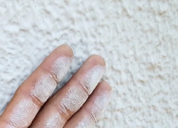 屋根や外壁の塗装の種類によりますが、触った際に手を見てみると白い粉が付いている、、、ということがあります。そのことをチョーキング現象といいますが、これは塗装の表面が紫外線や雨、風などによって劣化し、塗料の中の顔料がチョーくの粉のような状態になってしまい、触っると白い粉がついてしまうということになります。
