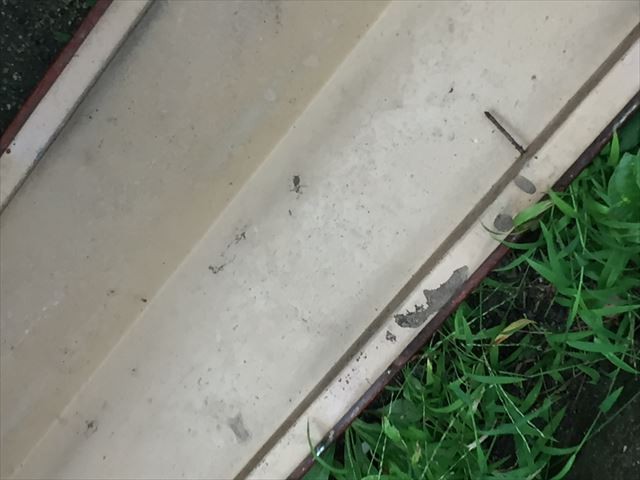 お話をお伺いすると屋根の板金部分が台風で飛んで落ちてきたそうです。