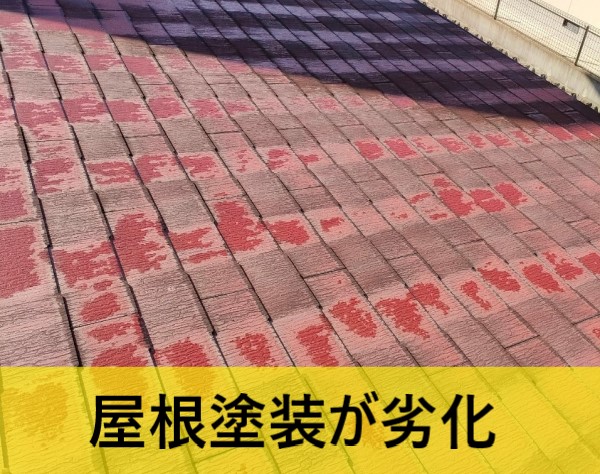 屋根に上ると、屋根塗装が劣化して色褪せている事が分かります。お客様宅の屋根は『