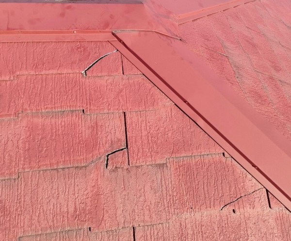 屋根塗装が劣化していた事もあり、水が染み込んで割れやすくなっていたのでしょう。