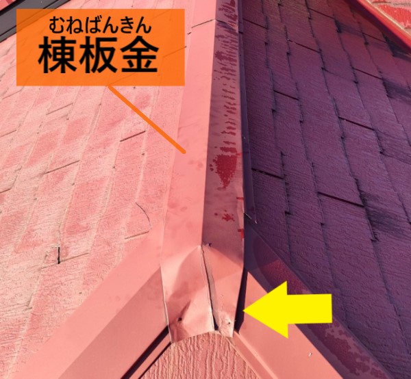屋根の頂上を守っている『棟板金』も釘の抜けがあり、浮いている状態でした。