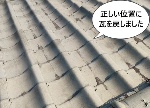 本来、瓦の下にある防水紙が屋根防水を行っているため、瓦がずれてもすぐに雨漏りすることはありません。