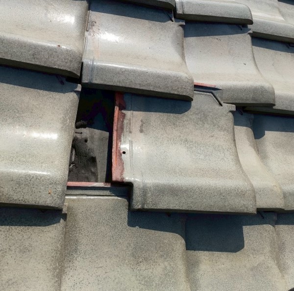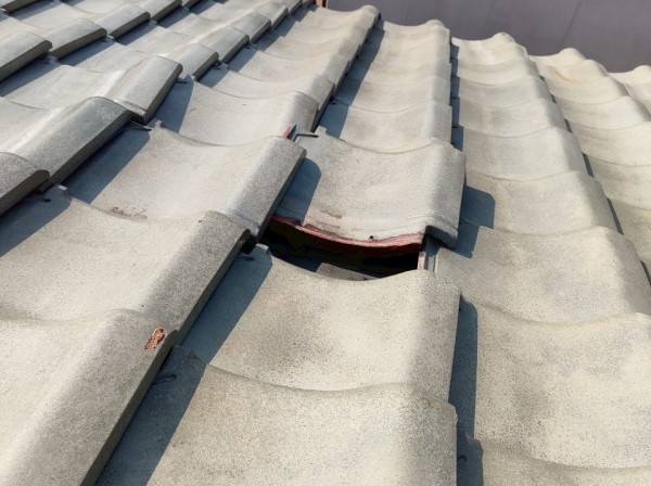 恐らく強風により、瓦が正しい位置からずれてしまったと考えられます。
