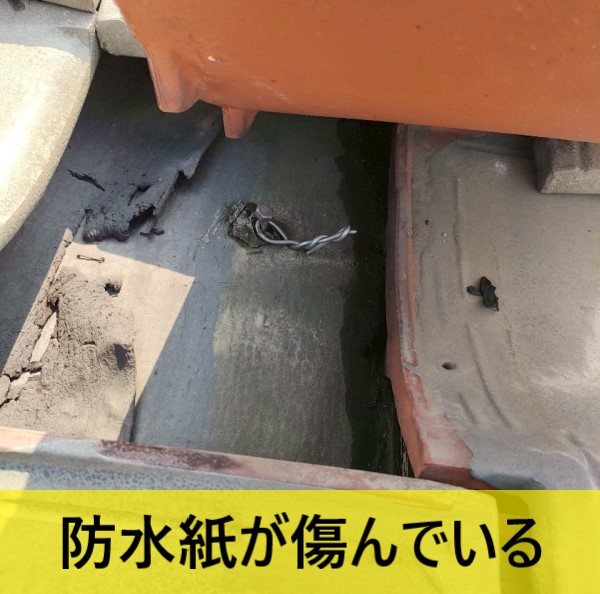 剥がれた箇所の瓦をめくって下地の防水紙も確認したところ、