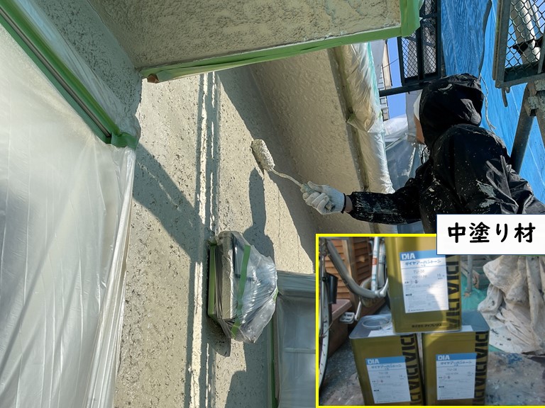 紀の川市の柄のついたモルタル外壁にアーバントーンTU38を塗装