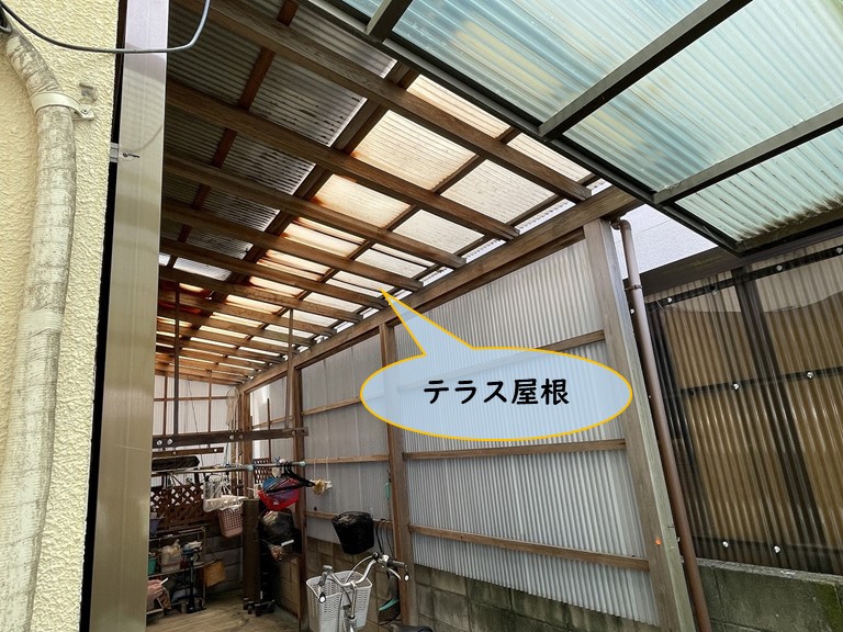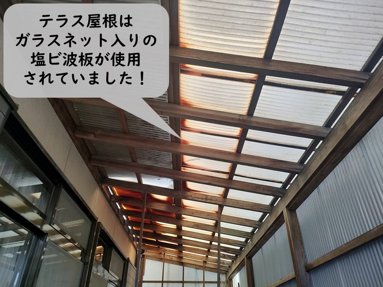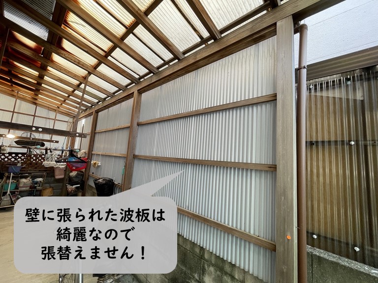 テラスの壁に張られた波板は綺麗な状態でしたので、屋根の部分だけ張り替えることになりました。