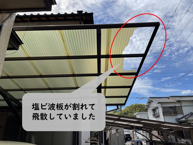 ホーム > 紀の川市でカーポートとテラス屋根の塩ビ波板が劣化していました…
