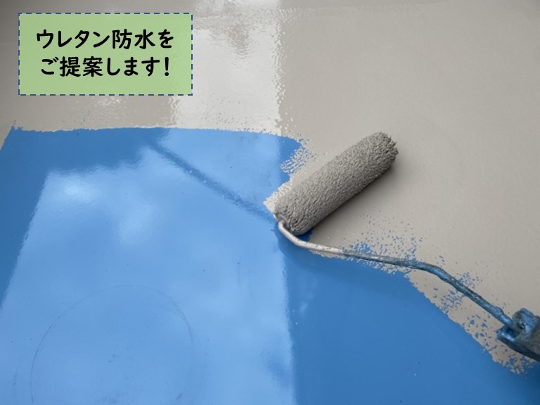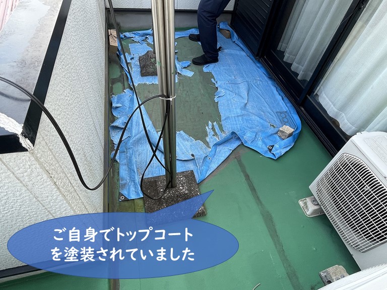 2回ほどトップコートが塗装されていたので、を確認する事ができませんでした。」をご提案します。≫ウレタン防水とは?メリット・デメリットとバルコニー・ベランダや陸屋根(屋上)への施工工程