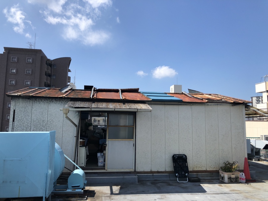 ホーム > 平野区プレハブのトタン屋根が飛ばされた現場調査