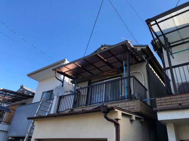 八尾市ポリカナミイタブロンズマット施工。2階のベランダ。