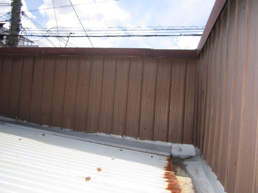 こちらは東向きの角部分です。東面は西面と比べると錆の広がりはあまりありませんでした。ただ、軒先は水の流れが悪いのか錆がありました。
